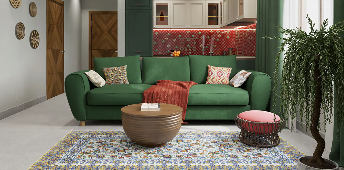 Мозаичный кухонный фартук насыщенного красного цвета в сочетании с яркими флористическими декорами Авейру. Подарок для тех, кто любит «восточные специи» в интерьере или ценит современную обстановку без оглядки на традиции. Расширяет цветовую гамму гостиной керамический ковёр Порту 120х240 см на основе национальных португальских узоров азулежу.
