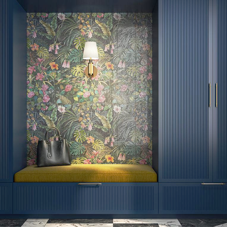 Панно с эффектом художественной мозаики серии Альвао – россыпь экзотических цветов на фоне пышной зелени. Выложить "ковер" на стене любого размера легко. Дизайнеры KERAMA MARAZZI позаботились об этом – верхний и правый края декоров можно продолжить. Альвао добавит экзотику в интерьер. Сделает его необычным.