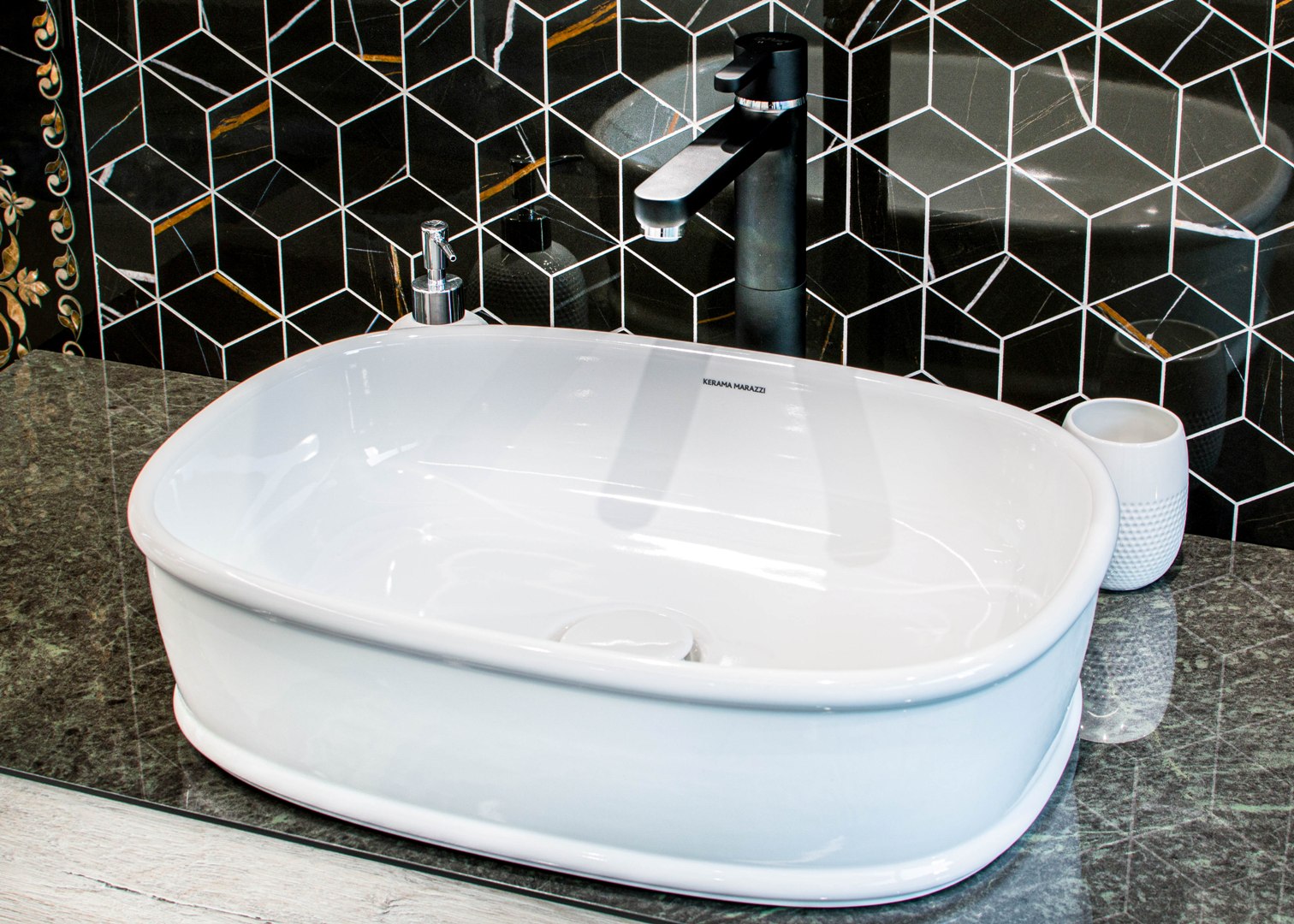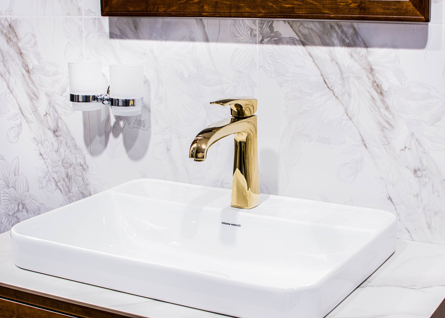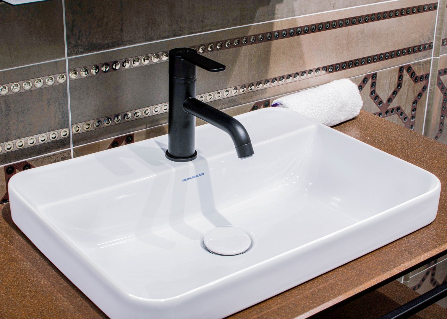 KERAMA MARAZZI предлагает множество комбинаций «раковина + столешница + тумба». К каждой из столешниц будет несложно подобрать напольные и настенные материалы, скоординированные по эстетике и рисунку. Комбинацию можно дополнить зеркалом и пеналом в том же стиле, сделав обстановку более завершённой.
