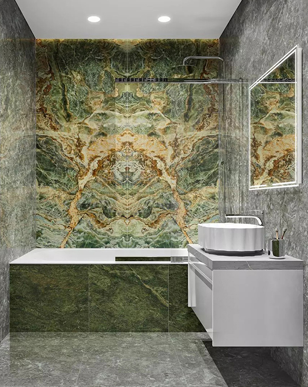 Эти материалы уже долгое время служат основой для создания роскошных интерьеров. Сегодня они представлены в новом свете, с нетрадиционным "прочтением" камня, где текстура выделяется нестандартными акцентами. Среди последних тенденций - симметричная раскладка, известная как "бабочка". Возможность воссоздать такой узор из натурального камня - большая редкость. А керамогранит позволяет легко достичь эффектного результата и не уступает в эстетике. К тому же его укладка проще благодаря выбору удобного формата.