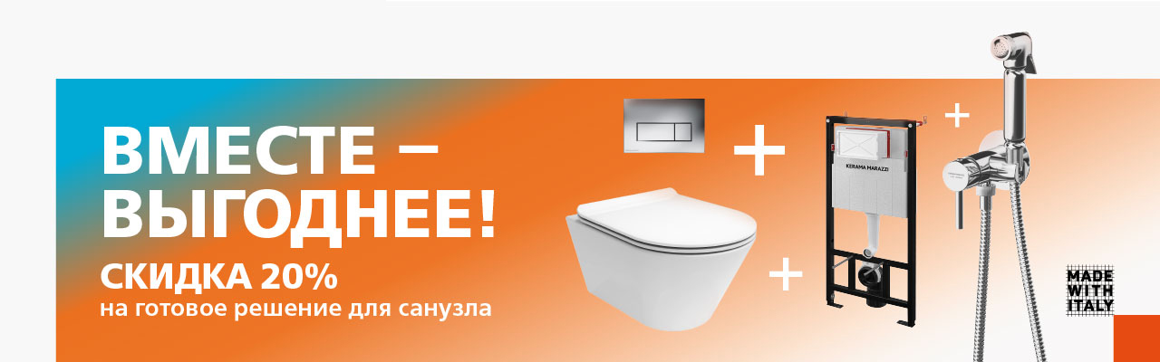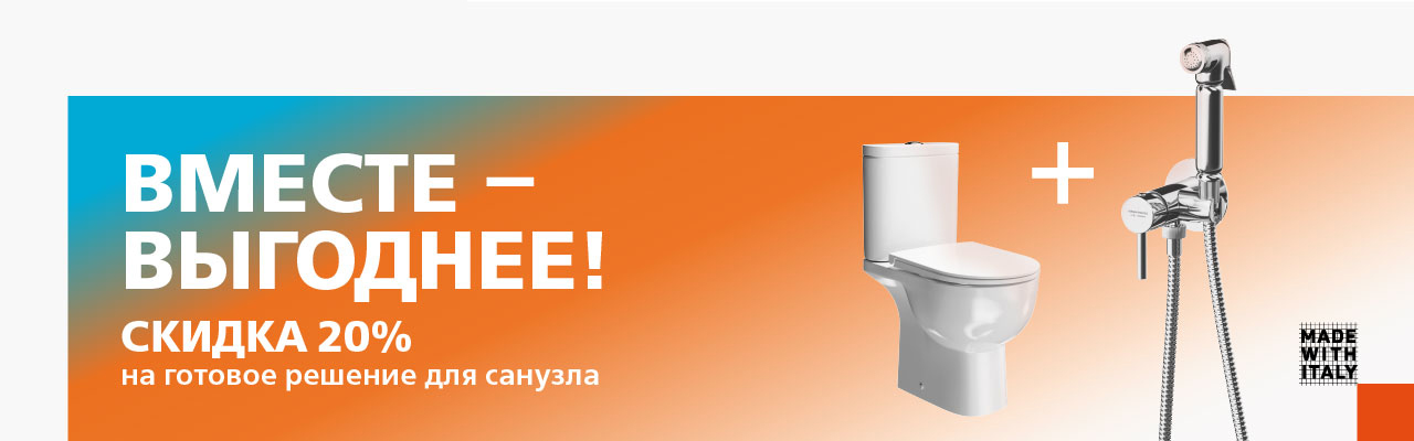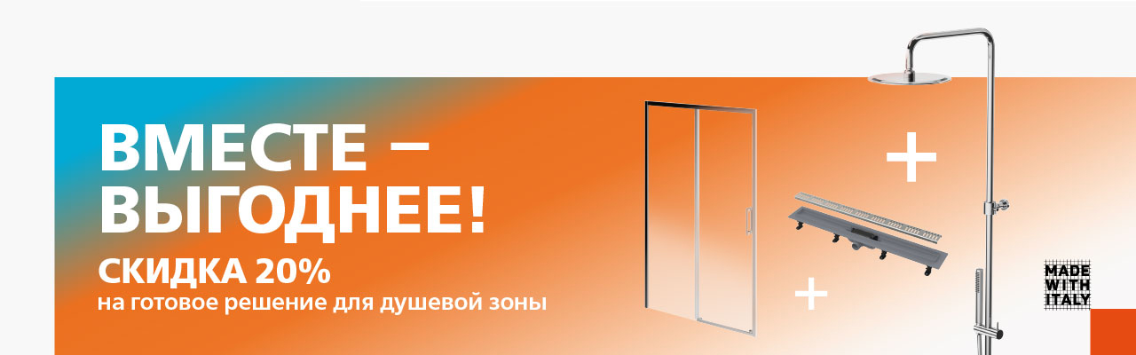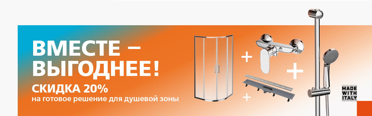 Вы можете получить скидку 20% на комплексную покупку сантехники. В акции участвуют два набора для душевой зоны и два набора для санузла.