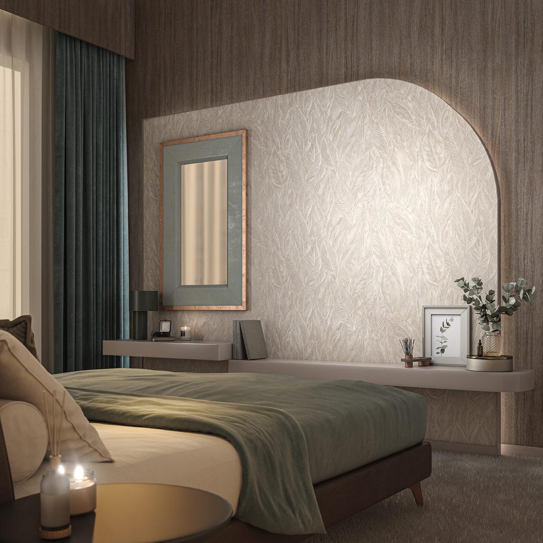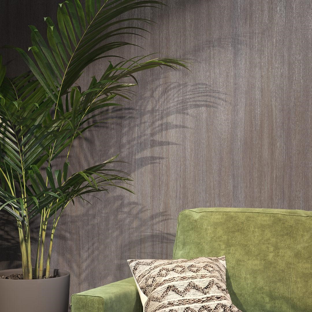 Фоновые обои напоминают продольный спил натурального дерева. Тиснение реалистично передает естественную красоту древесины. Эффектно смотрятся в дуэте с мотивом серии и отдельно.
