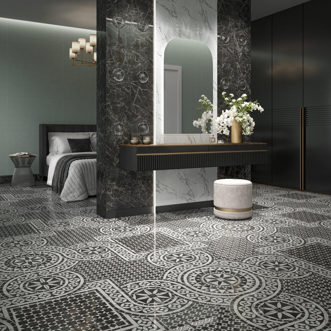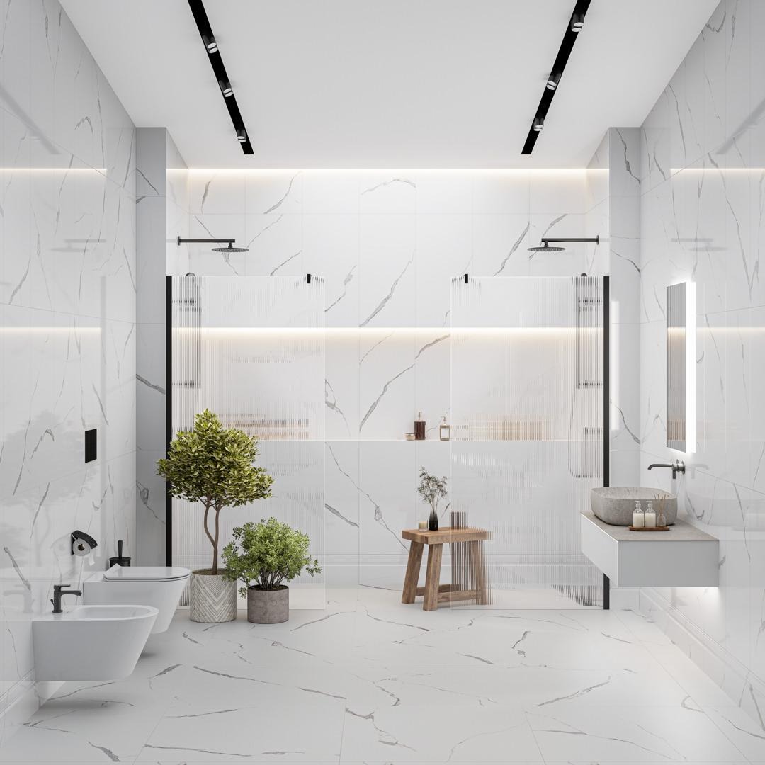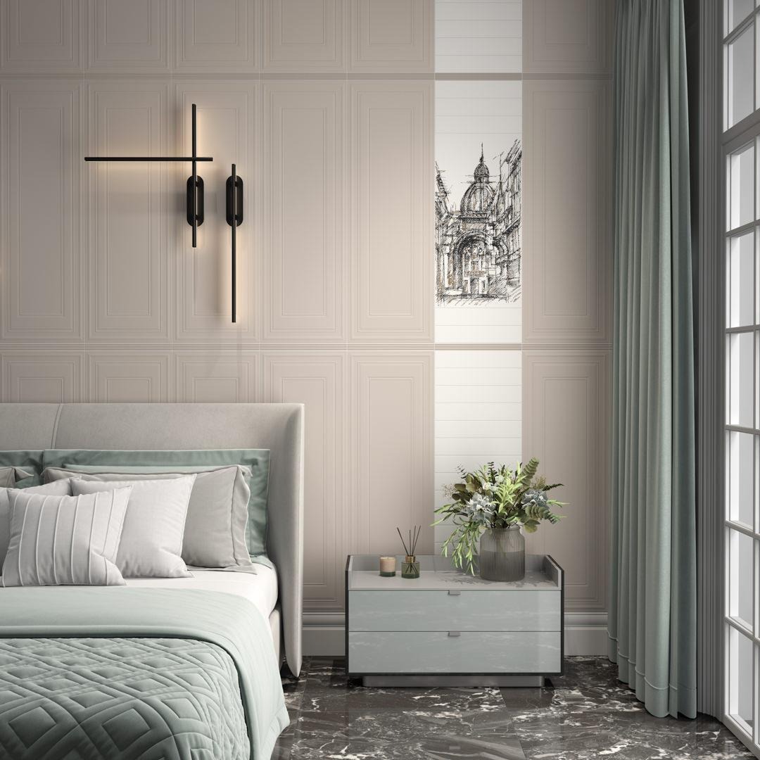 - фирменные обои, керамический гранит сверхкрупных форматов и персонализированные материалы.