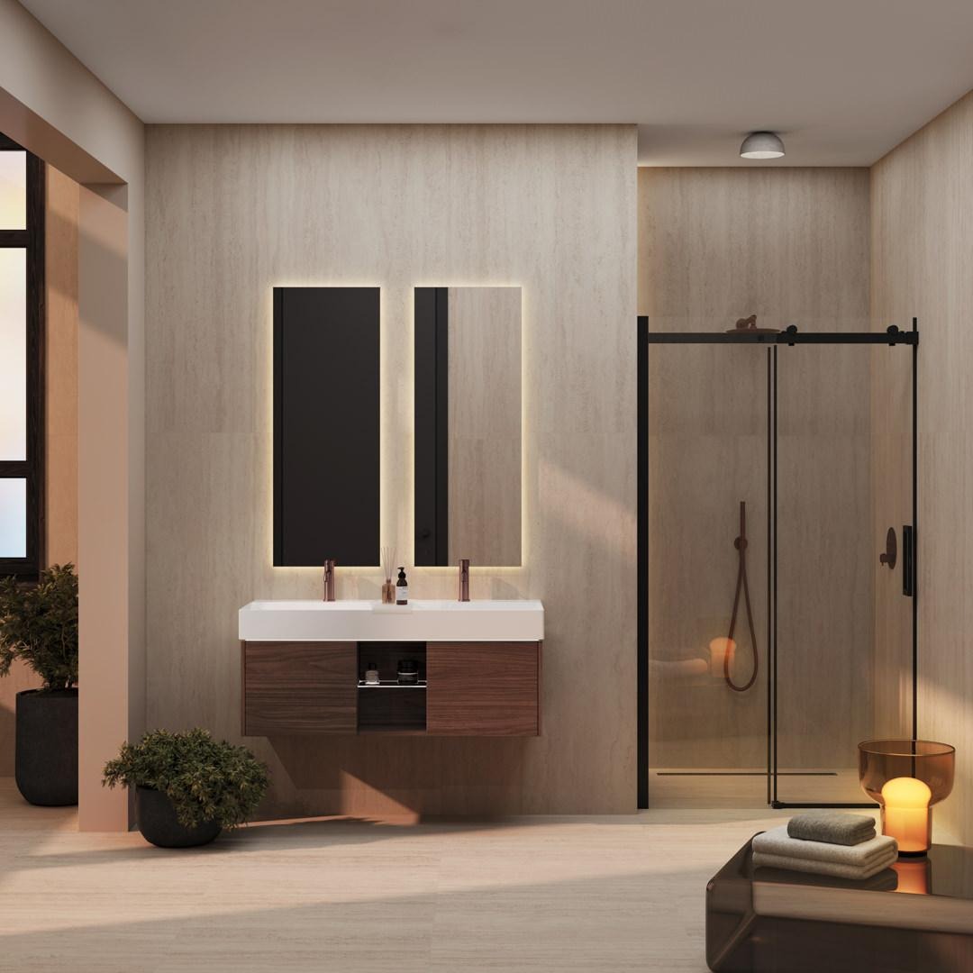 - коллекция санкерамики, мебели для ванных комнат, душевых ограждений, зеркал и смесителей,