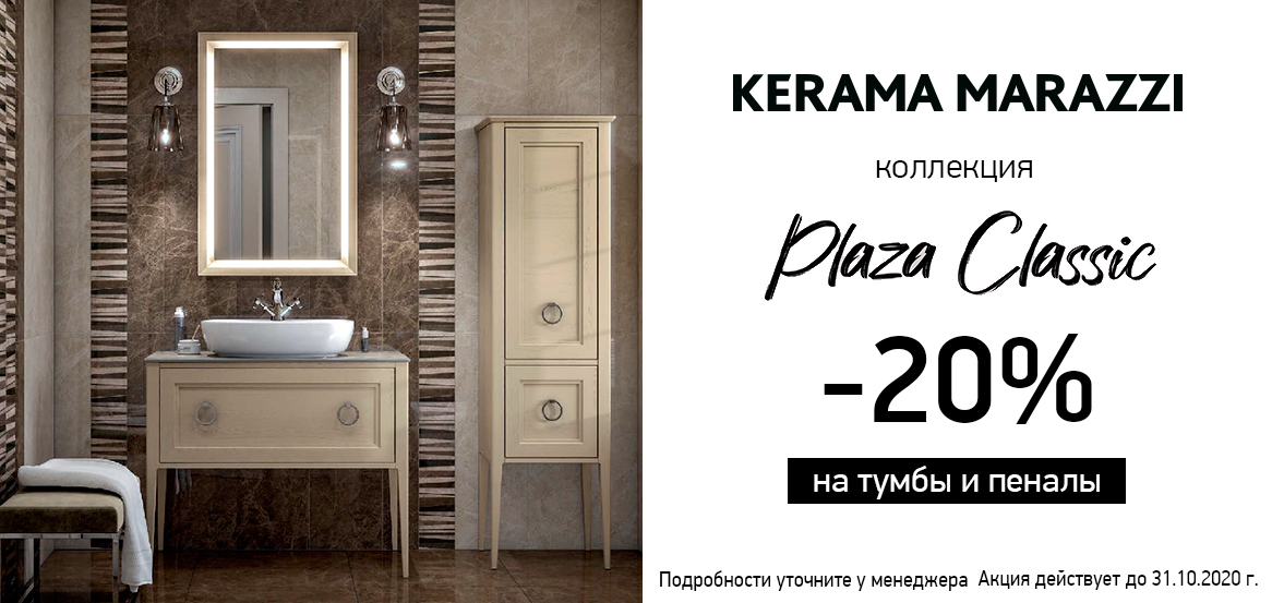 До 31 октября 2020 действуют специальные цены на отдельные позиции мебели для ванной комнаты из коллекций KERAMA MARAZZI Plaza Classic и Buongiorno. Познакомьтесь со списком акционных товаров, кликнув на баннер.