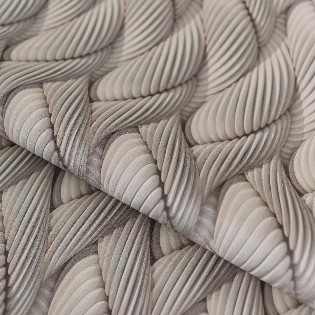 Серия Трессаж, словно затейливое плетение из плиссированного текстиля. Множество мелких складок переливаются перламутровым золотом. Что усиливает эффект объёма, добавляет элегантного шарма в дизайн. Роскошная графика Трессаж гармонично дополняет интерьер в современном стиле.