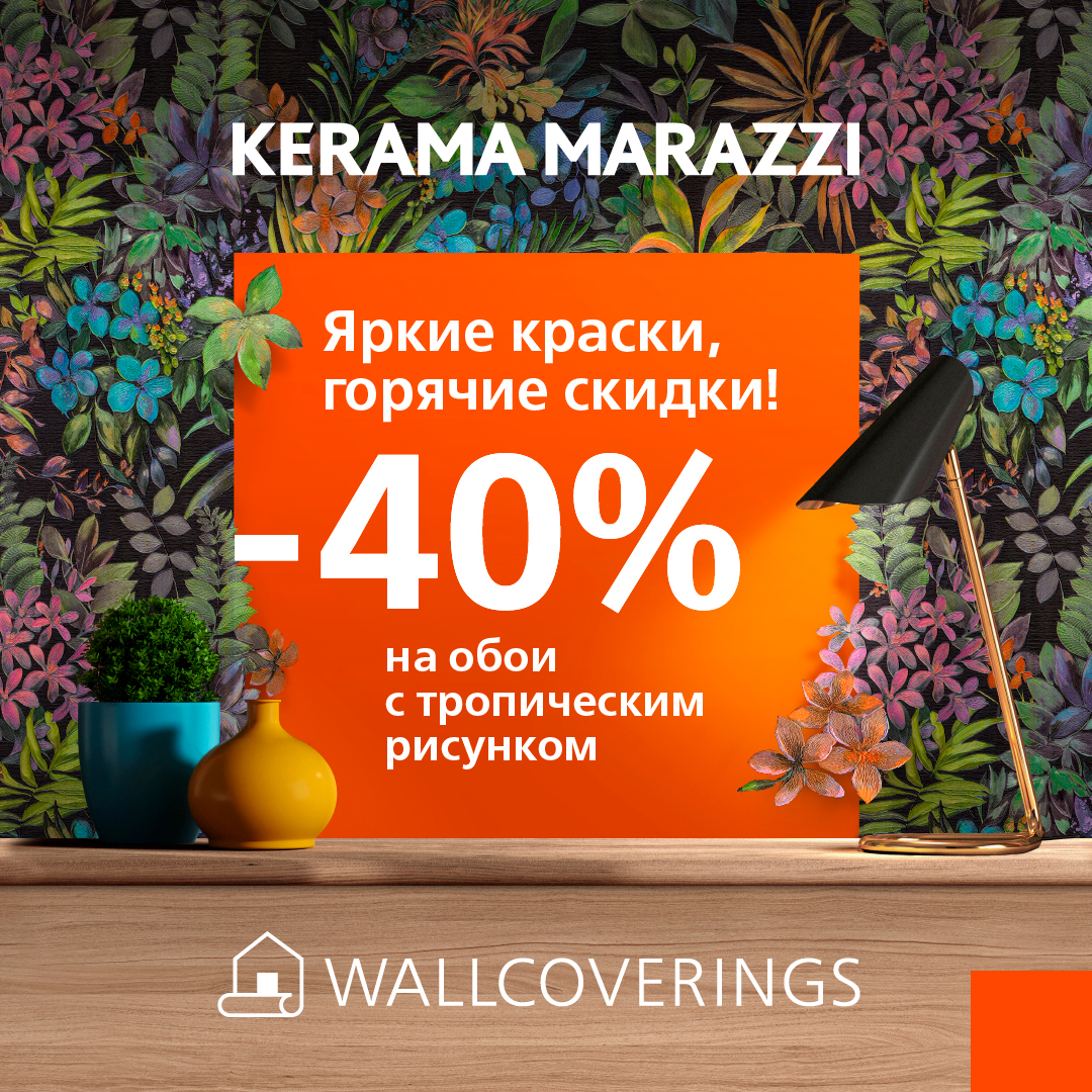 С первого июля и до конца августа обои KERAMA MARAZZI с тропическим рисунком с выгодой 40%!
