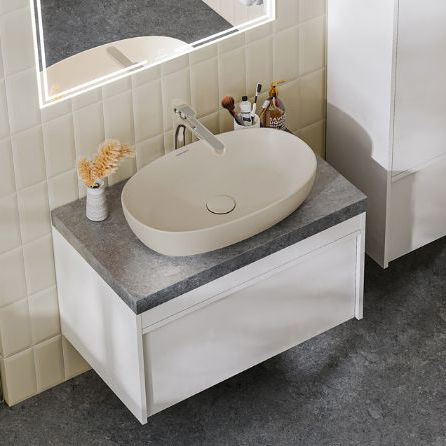 Комбинируя размер, форму, цвет раковины и дизайн столешницы создадите свою уникальную композицию. Посмотрите на множество сочетаний, предлагаемых KERAMA MARAZZI.