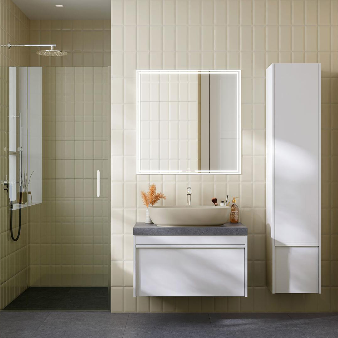 Размерный ряд тумб: от 60 до 100 см. Также в линейке MODULA представлены стильные пеналы. Модели подвесные – компактные, но вместительные, с несколькими полками внутри.