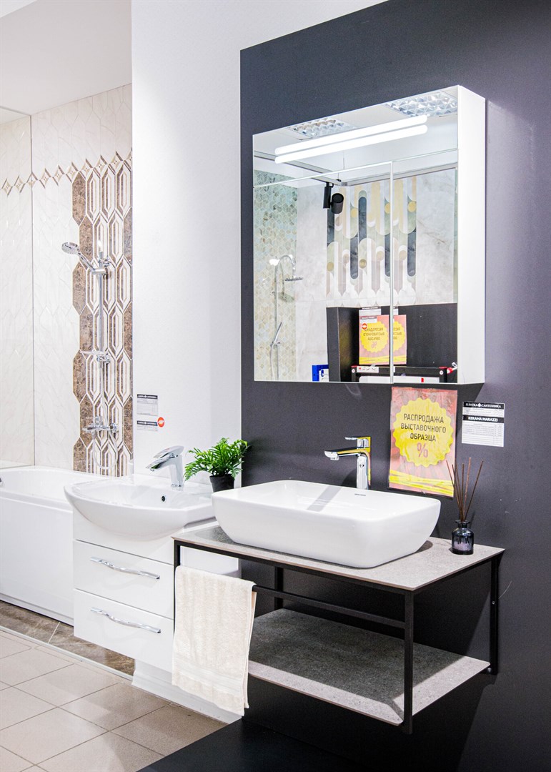 Можно не ехать в Москву – фирменный отдел KERAMA MARAZZI рядом. У нас дизайнеры с дипломами, сервис соответствует требованиям бренда и теплая атмосфера. Найдете все необходимое для ремонта. Готовые дизайны в интерьерных кабинах. На стендах керамическая плитка, керамогранит и дизайнерские обои. Роскошная классика и современный стиль. Также на выставочной площади салона открыт ДИСКОНТ-ЦЕНТР продукции, которая в нашем ассортименте. Скидки до 50%! С нашим дизайнером вы подбираете коллекции для оформления, сантехнику, смесители и мебель для ванной. И получаете в подарок эскизный проект будущего интерьера. Архитекторы, дизайнеры и строители, также приглашаем! Предлагаем сотрудничество на особых условиях.
