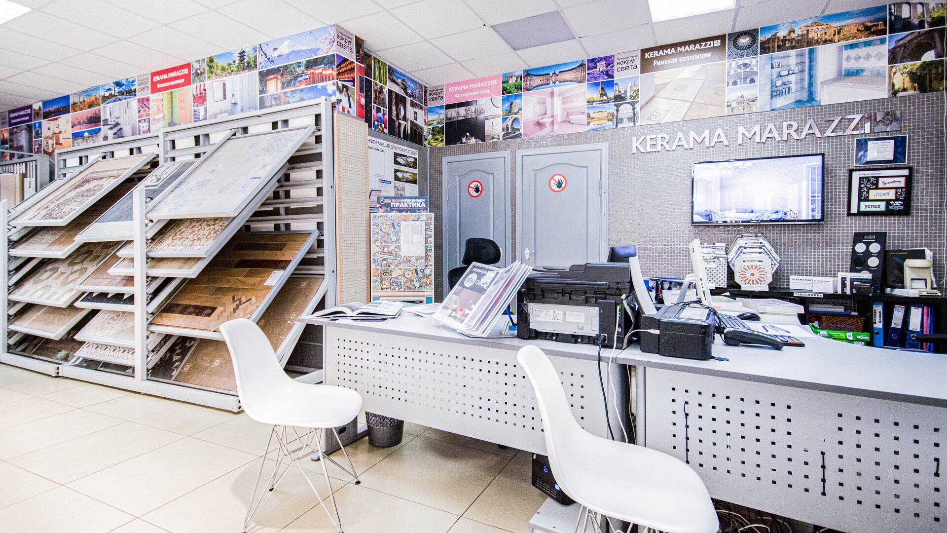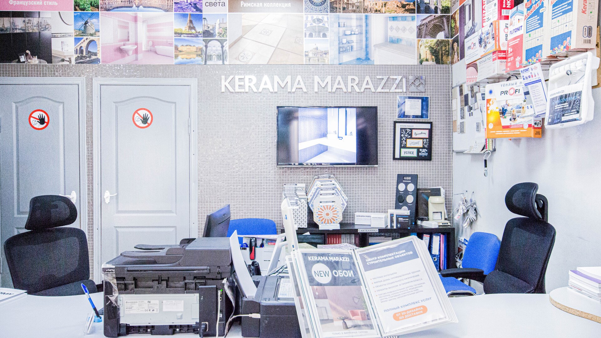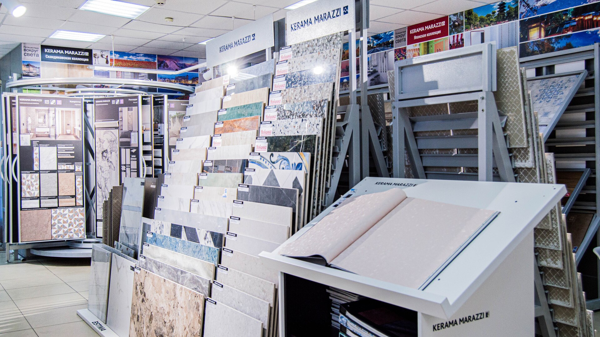 На центральной улице города отдел KERAMA MARAZZI. Фирменный, поэтому здесь практически полный ассортимент продукции, дизайнеры с дипломами и сервис уровня ультрасовременного салона. Найдете все для ремонта в одном месте: от идей и вдохновения до воплощения. А также доставка. Вы выбираете с нашим дизайнером или самостоятельно коллекции плитки и керамический гранит со стендов. На выставке обои, сантехнику и мебель для ванной комнаты. В подарок вы получаете эскизный проект будущего интерьера в 3D формате. Строители, дизайнеры и архитекторы, приглашаем к сотрудничеству! Предлагаем особые, комфортные условия. С нами вы экономите время.